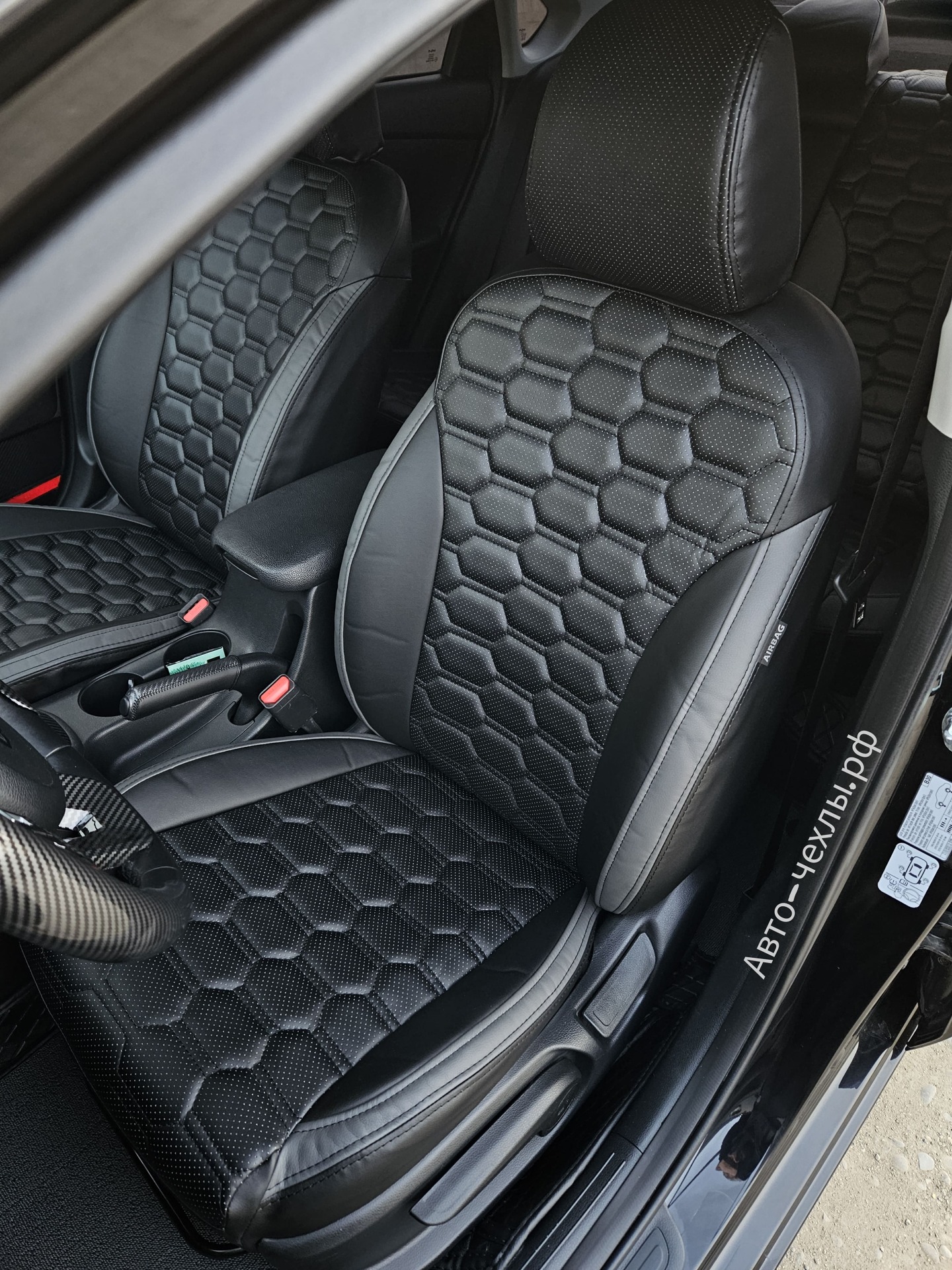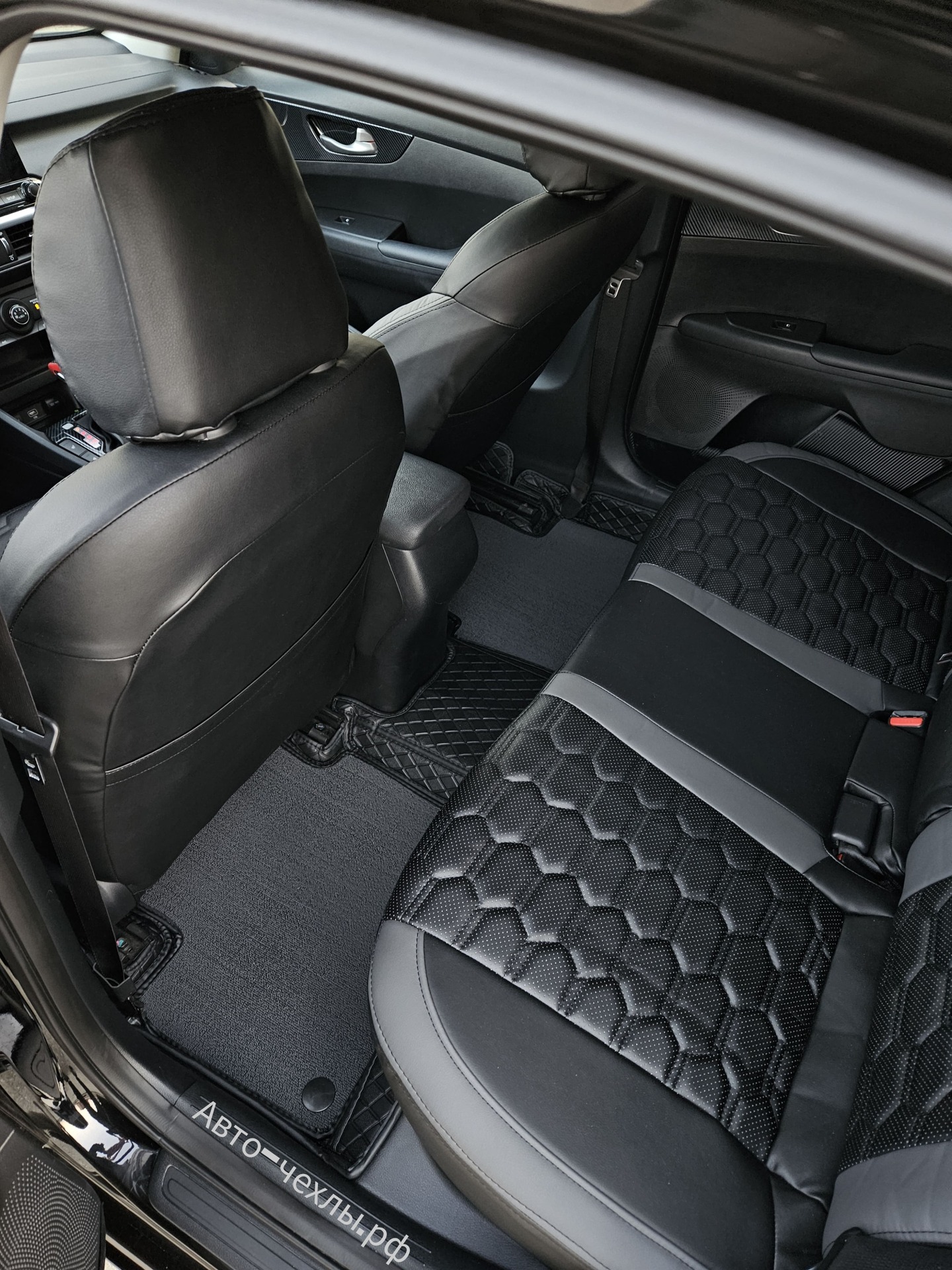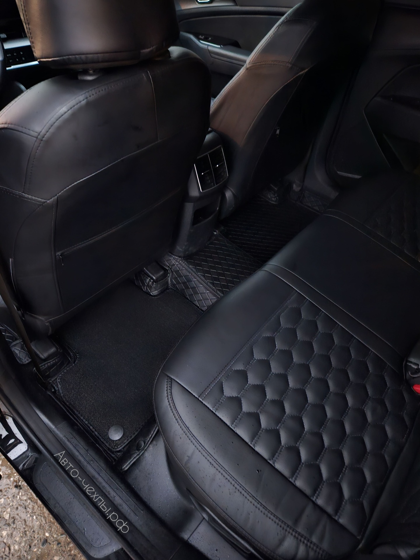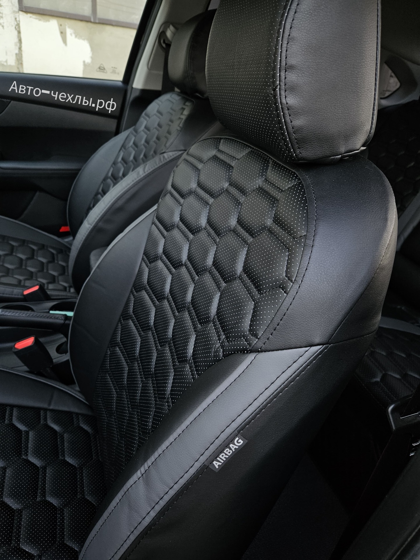 Чехлы экокожа (Соты - средние) + 5D Коврики (Люкс)