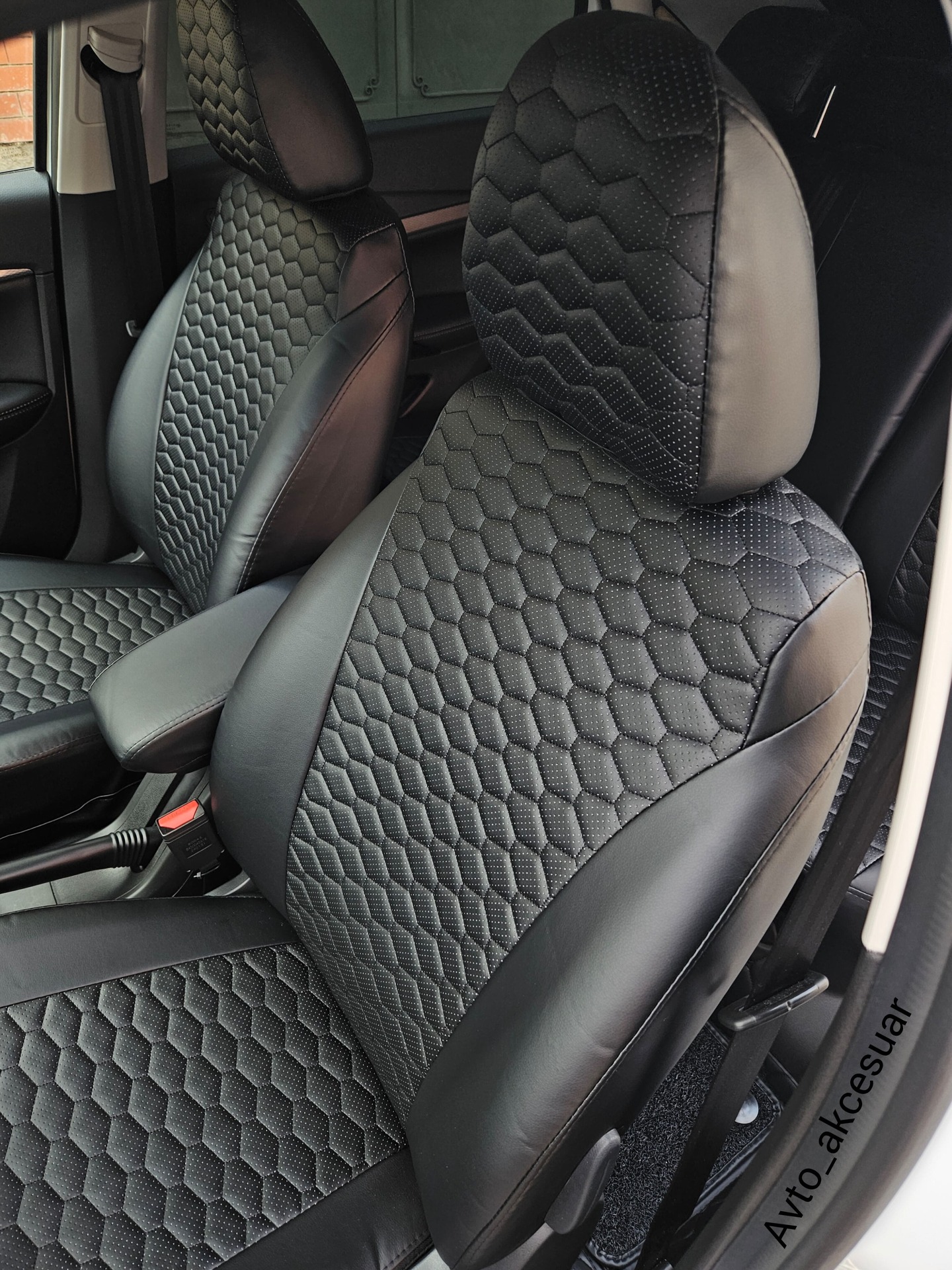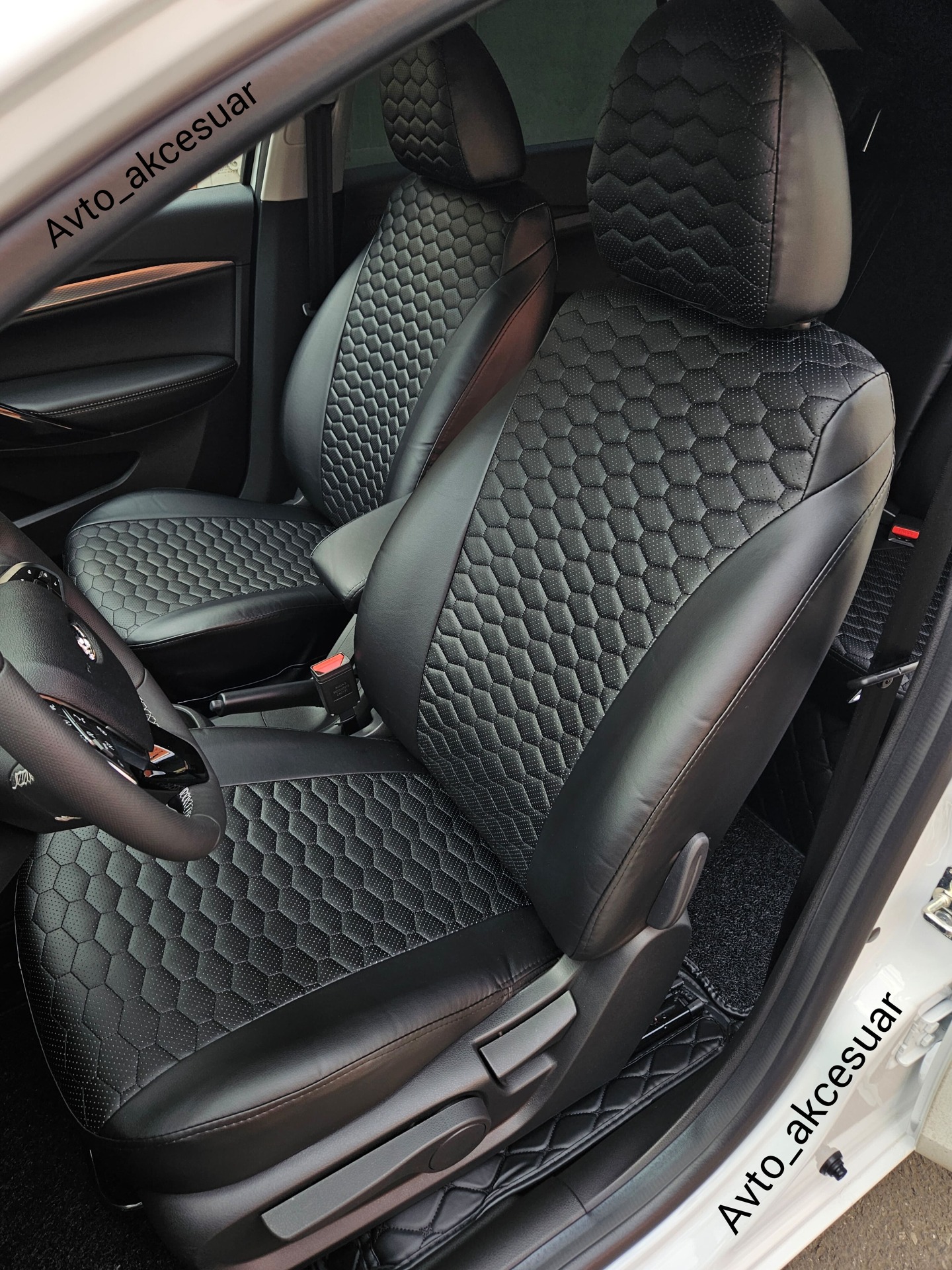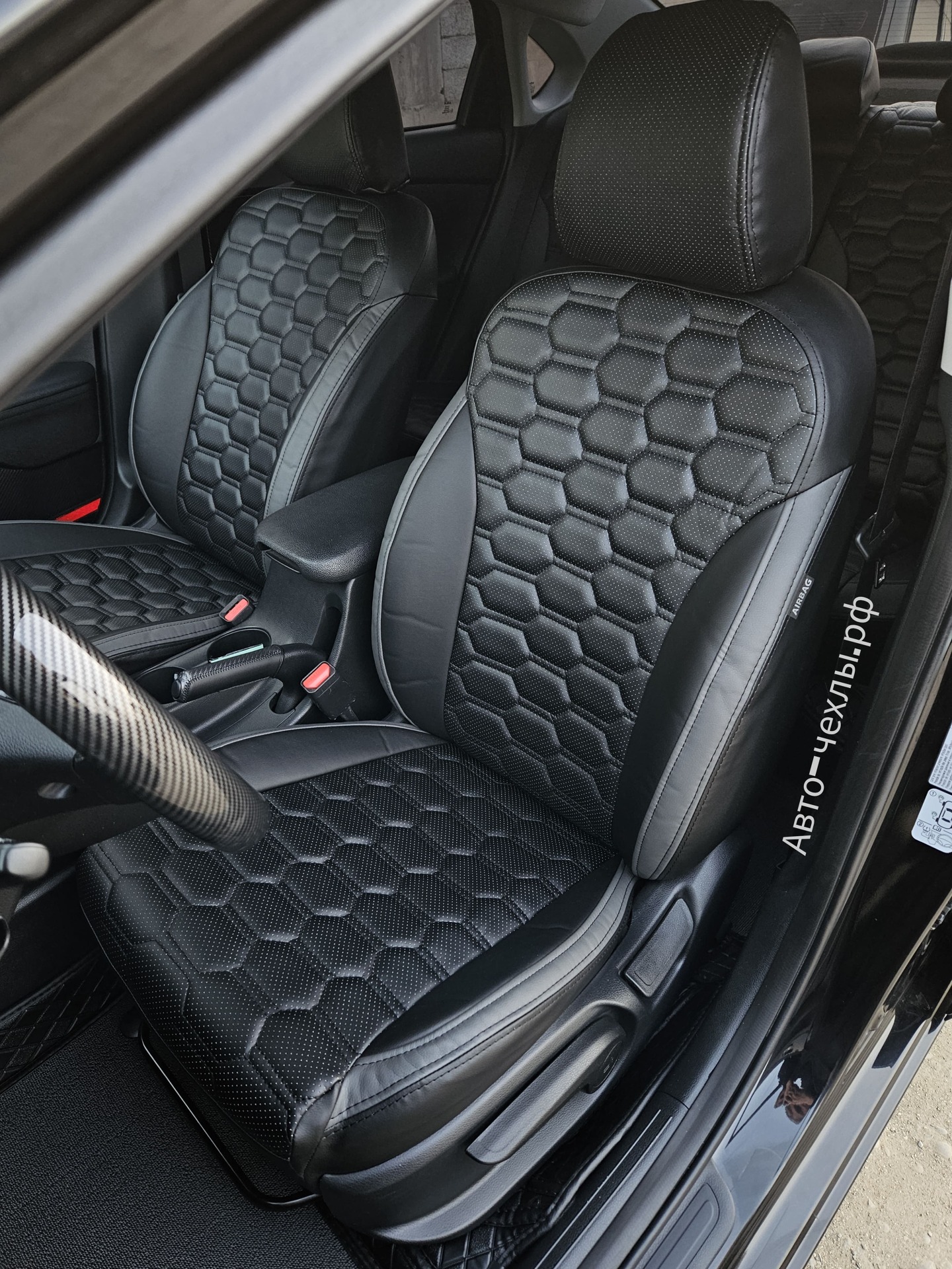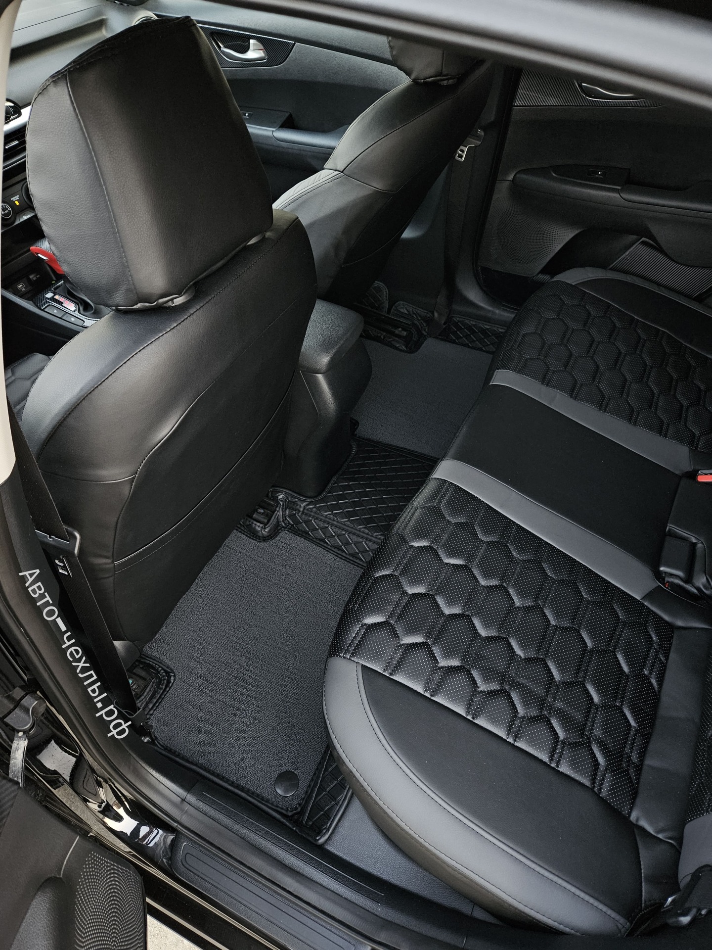 Чехлы экокожа (Соты - средние) + 5D Коврики (Люкс)