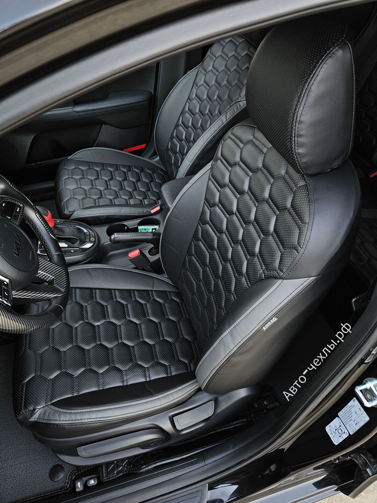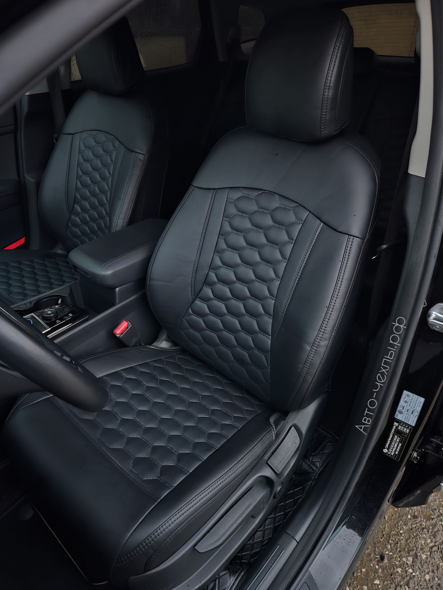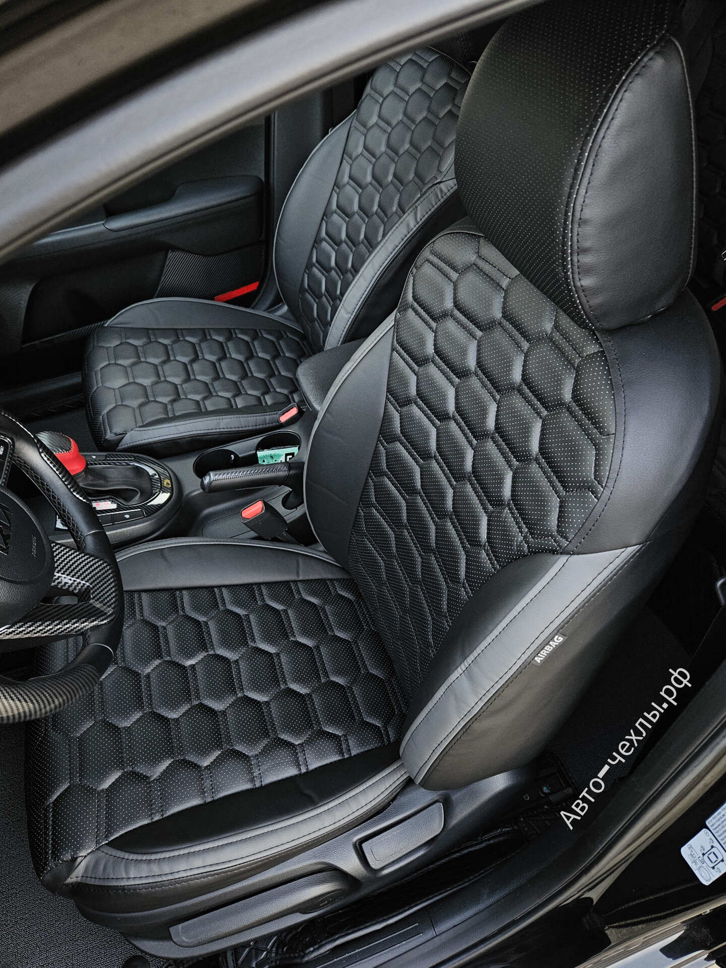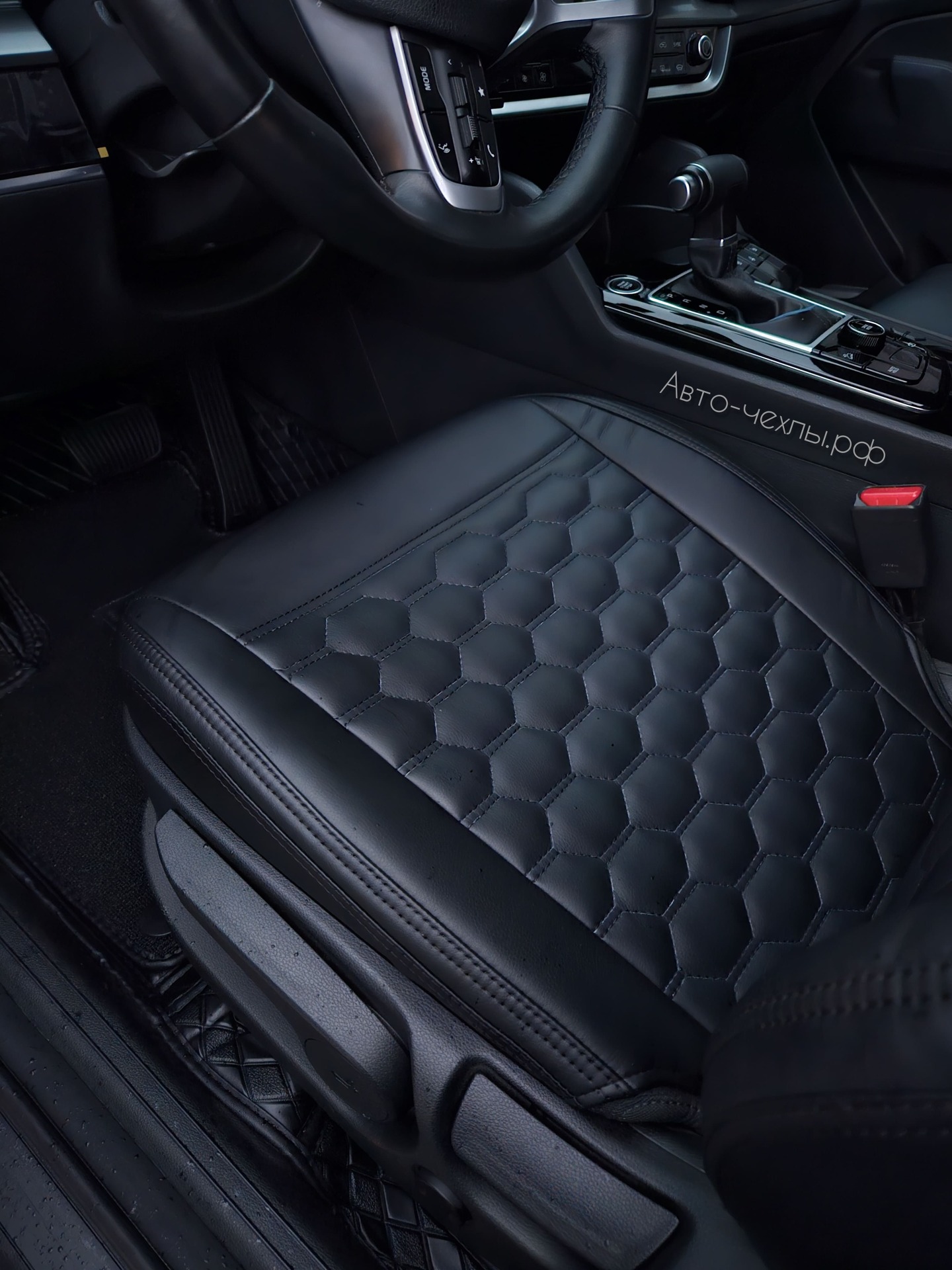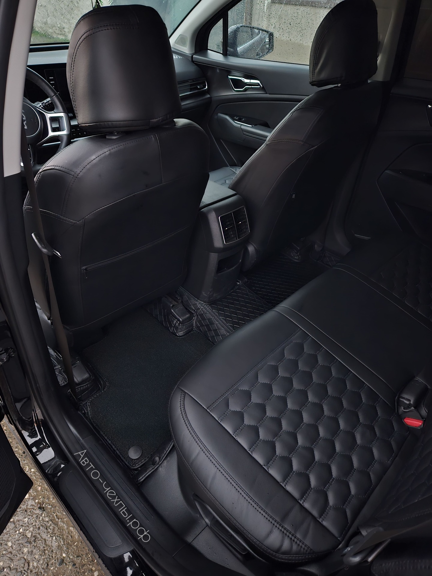 Чехлы экокожа (Соты - средние) + 5D Коврики (Люкс)