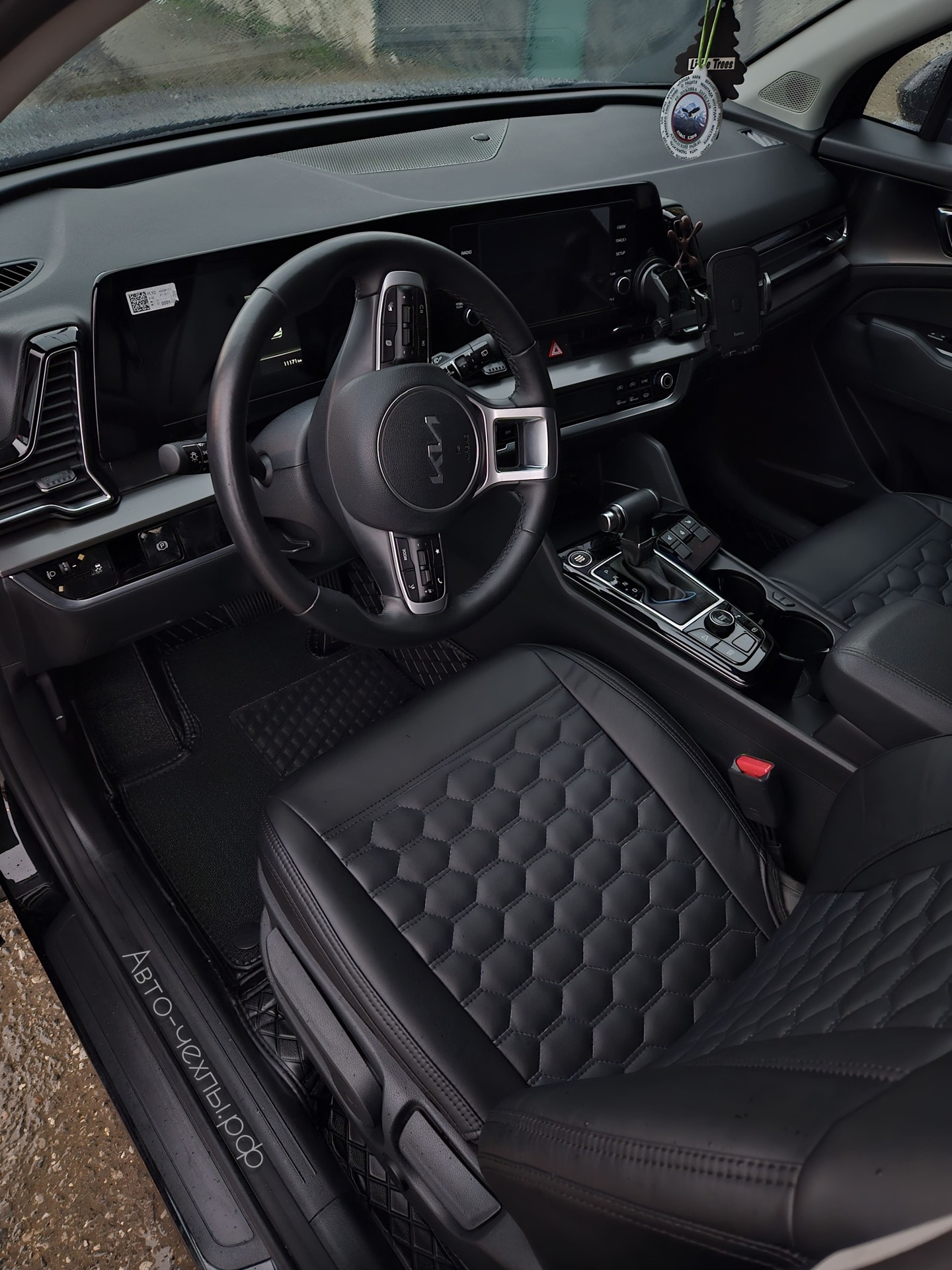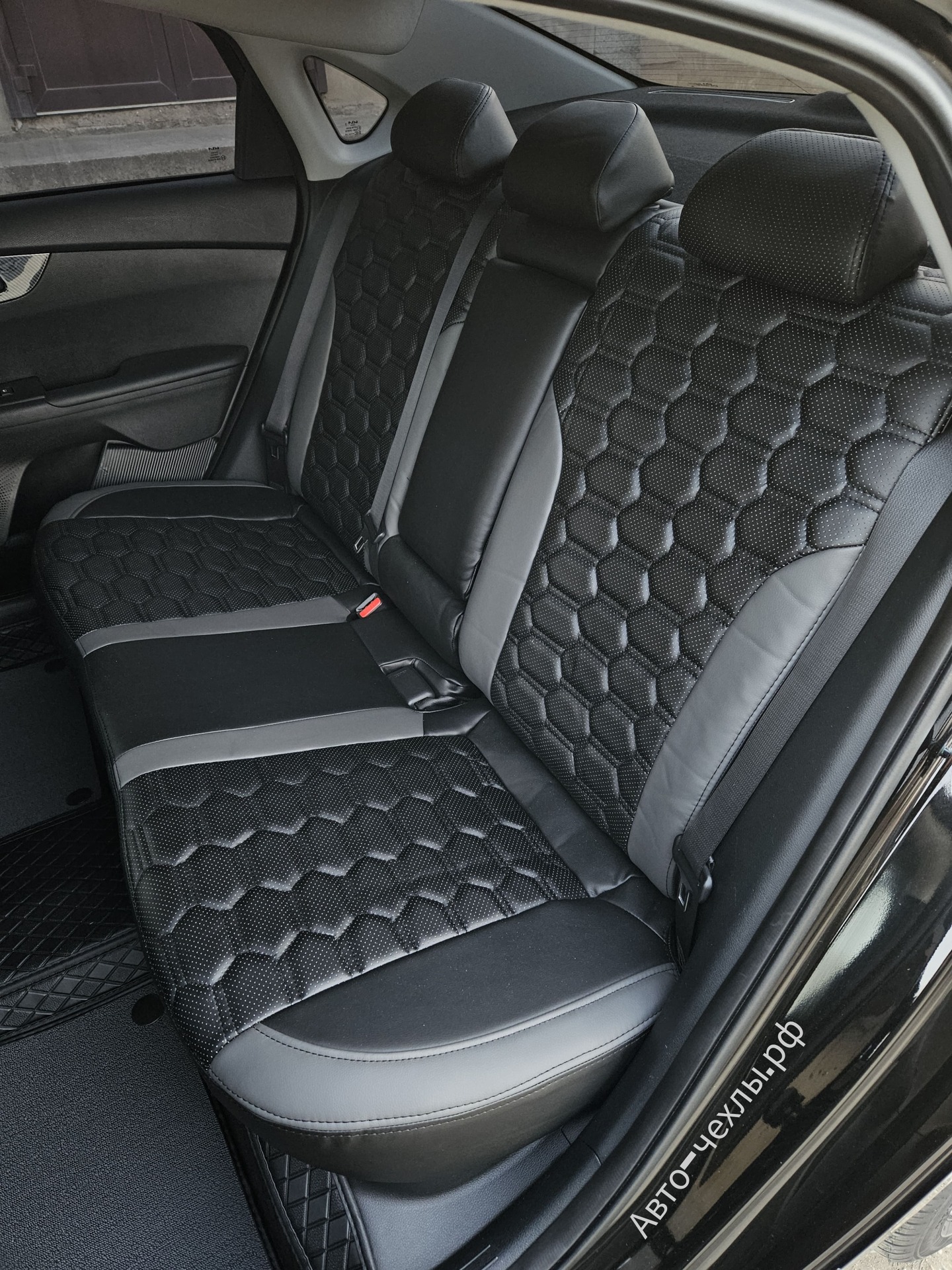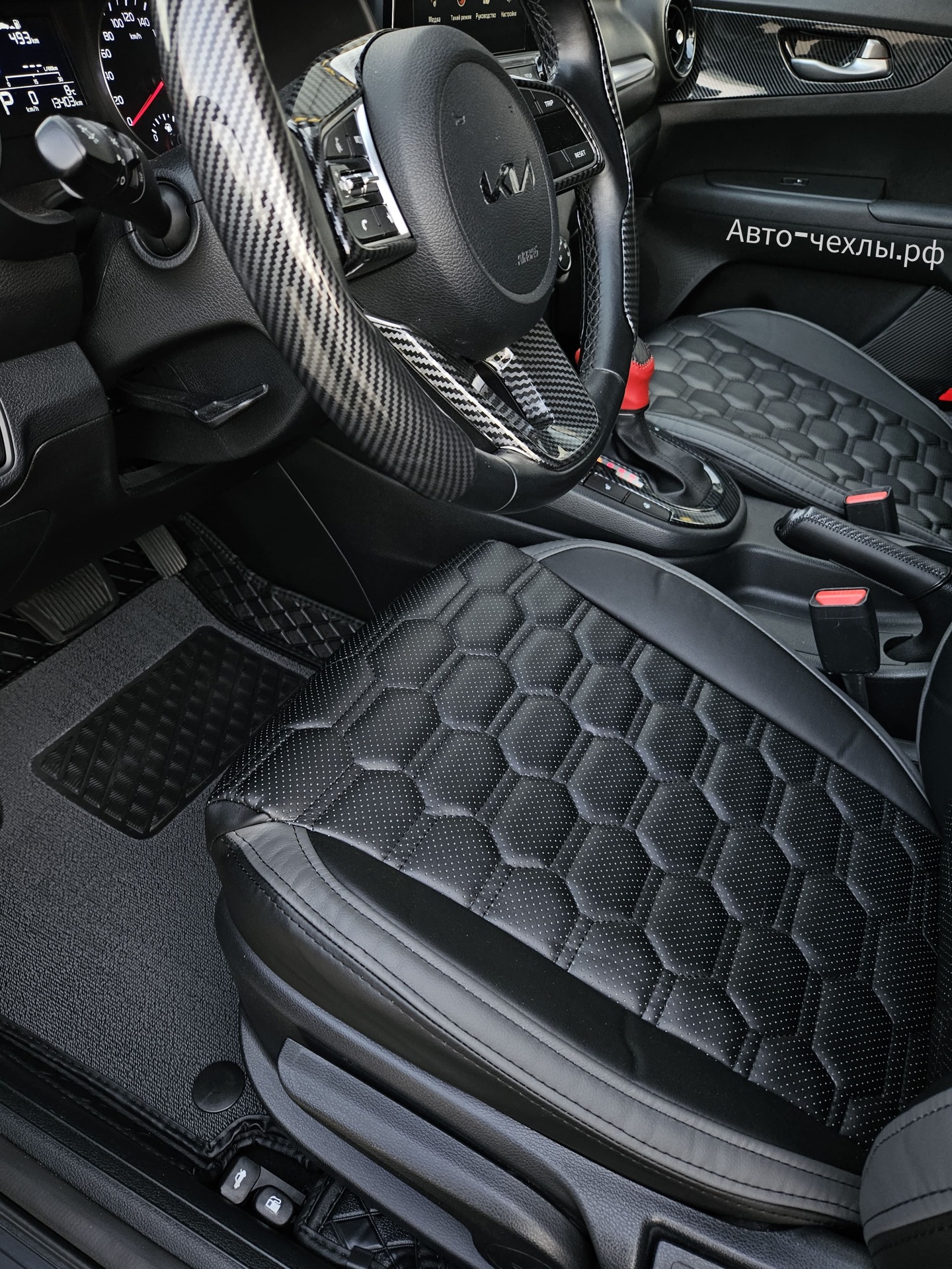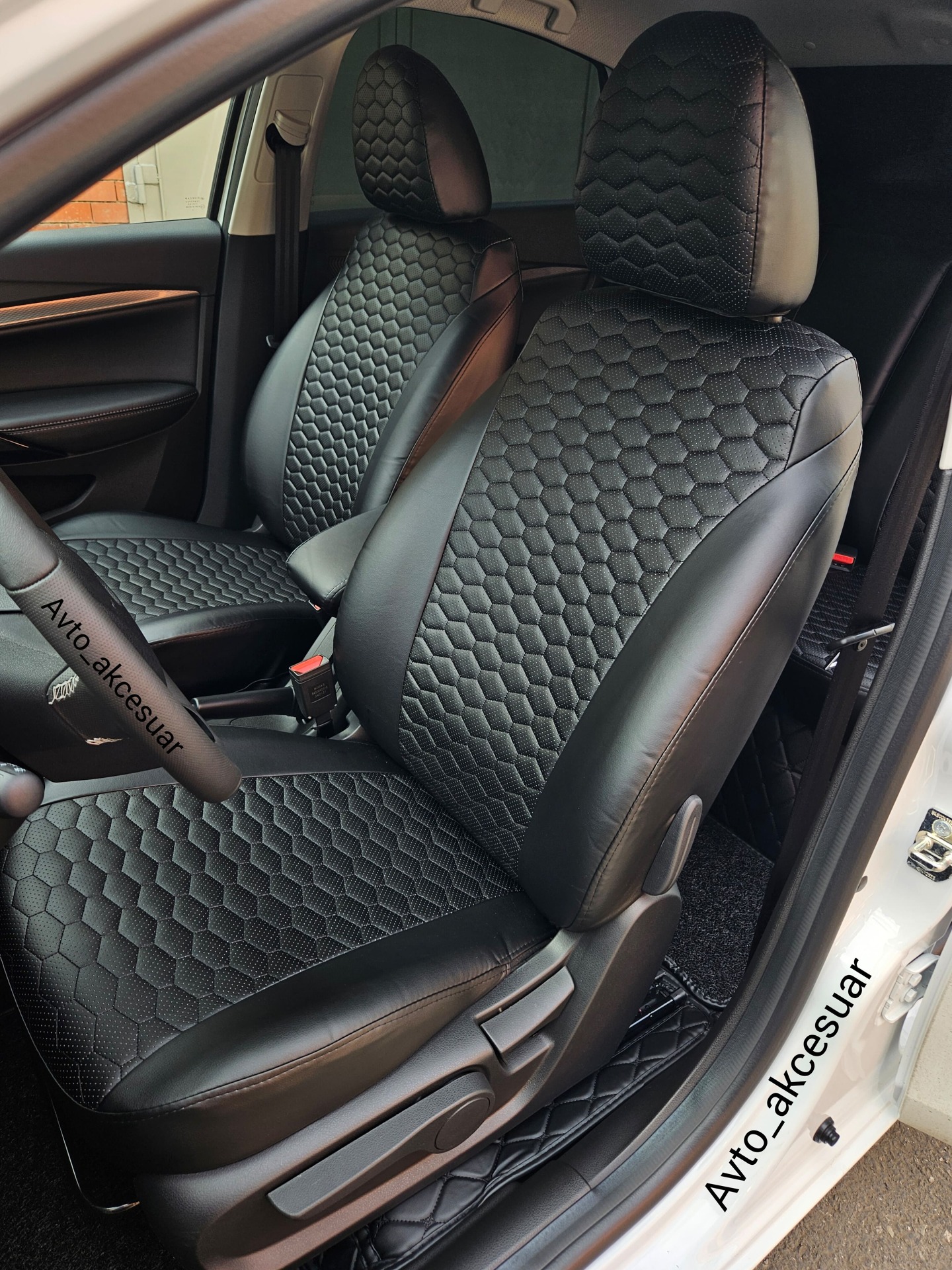 Чехлы экокожа (Соты - средние) + 5D Коврики (Люкс)