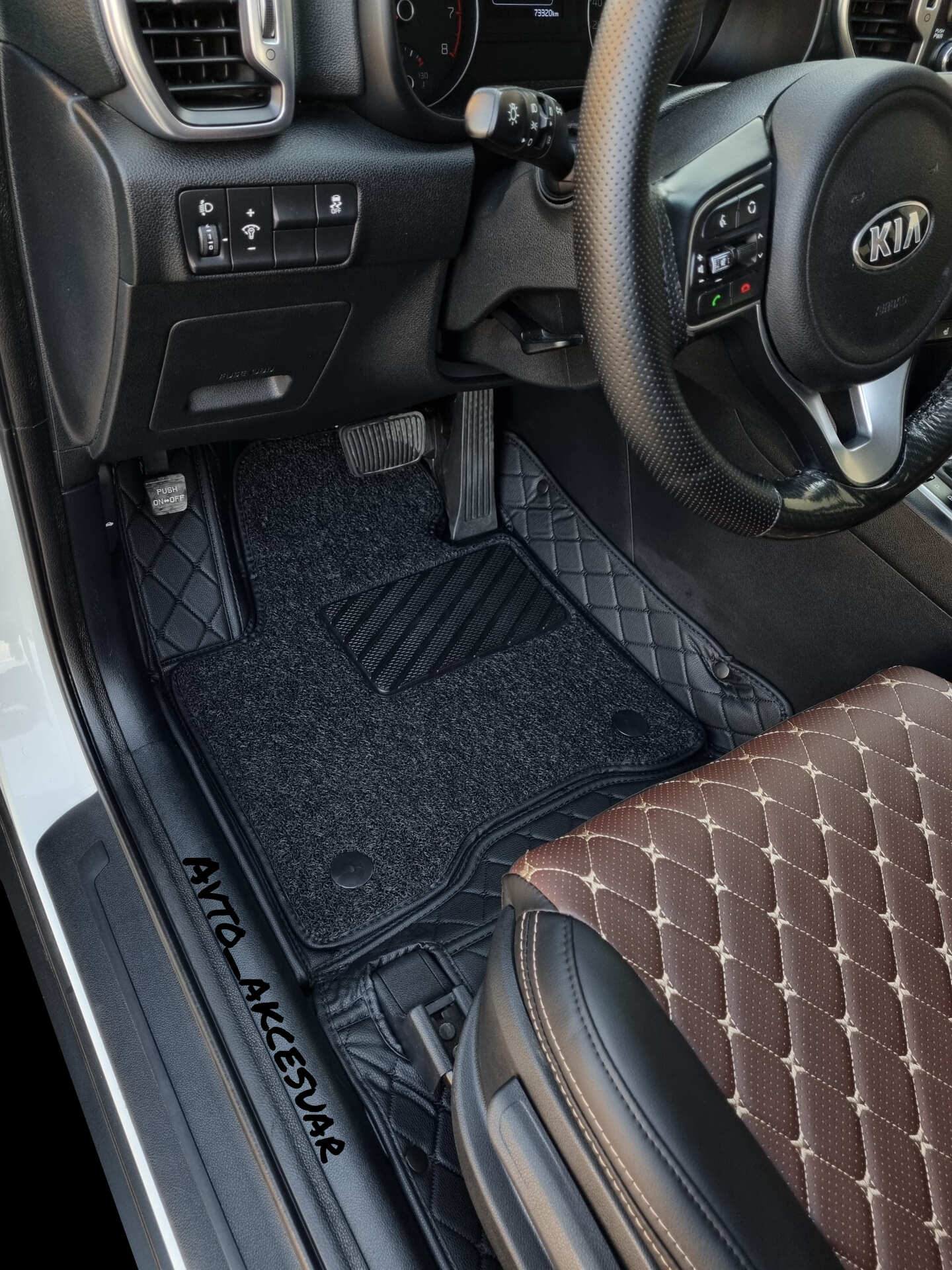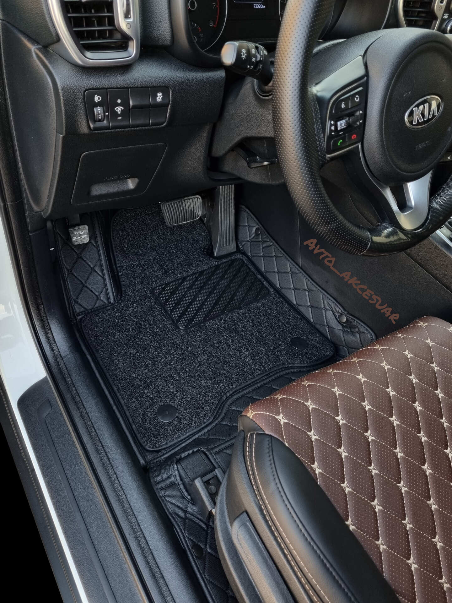 Чехлы экокожа (3D Ромб) + 5D Коврики (Стандарт) + Металлический подпятник