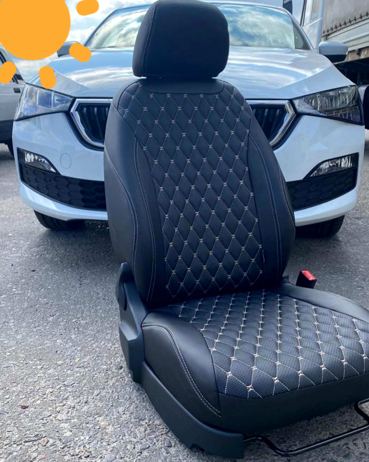 1) качестве пошива (аккуратный пошив по лекалам, ровные строчки, учет особенностей конструкции сидений)
